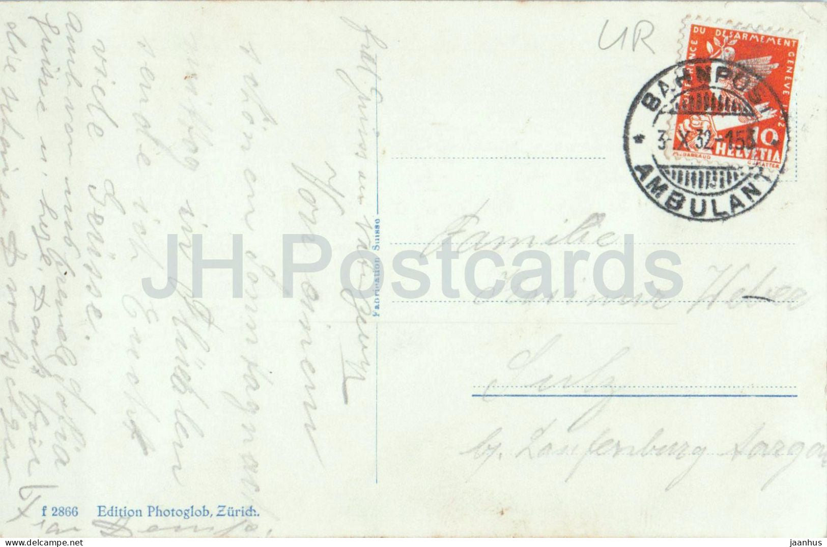 Axenstrasse mit Fluelen und Bristenstock - tunnel route lac montagnes -2866 - carte postale ancienne - 1932 - Suisse - utilisé