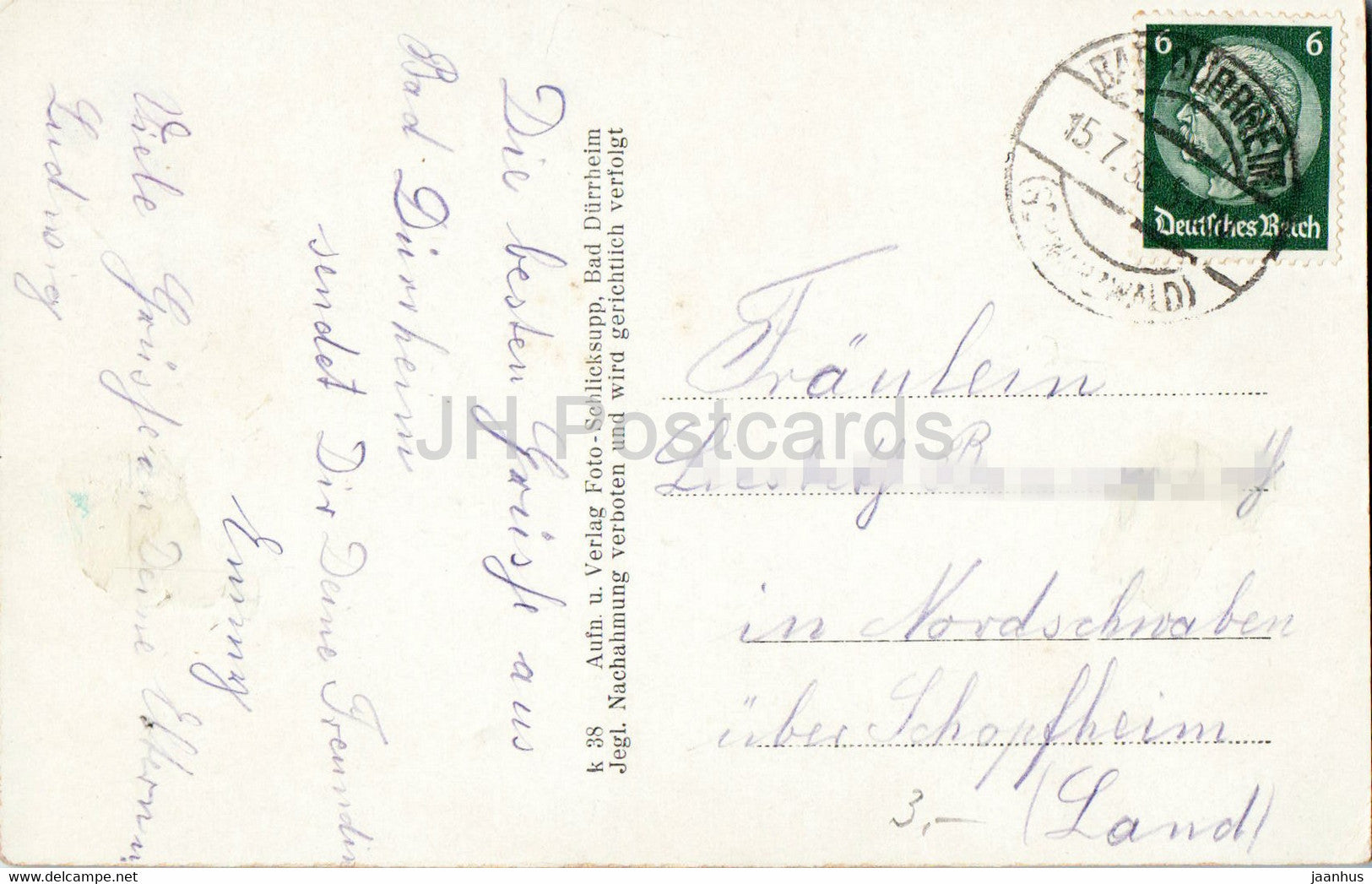 Bad Durheim - Eingang zum Kurpark - carte postale ancienne - 1935 - Allemagne - utilisé