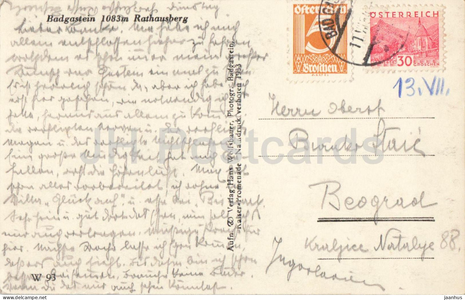 Bad Gastein 1083 m Rathausberg - Panorama des montagnes et de la vallée - W 93 - carte postale ancienne - 1934 - Autriche - utilisée