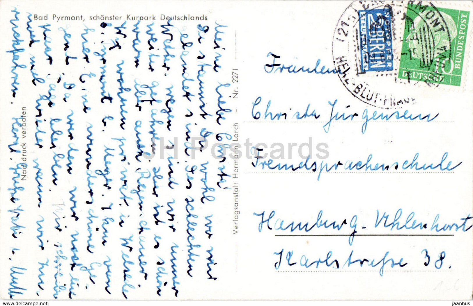 Bad Pyrmont - Fontanenallee - Kurhaus - Palmengarten - Weisse Brucke - carte postale ancienne - 1955 - Allemagne - utilisé