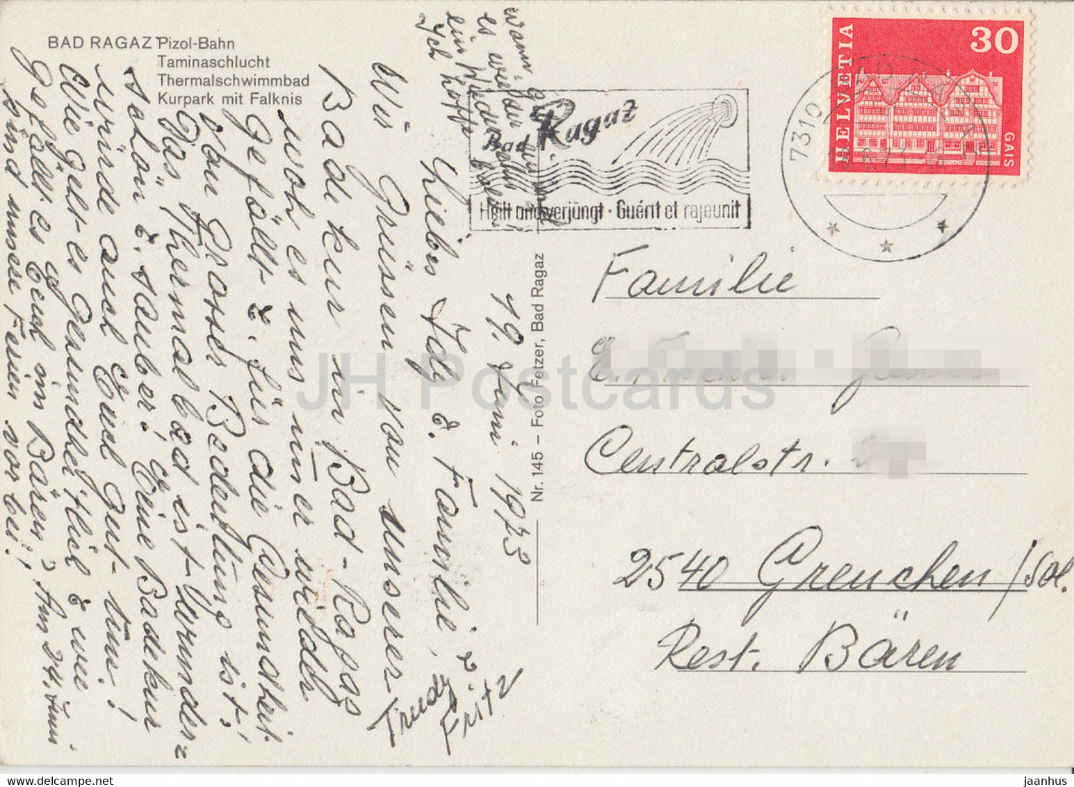 Bad Ragaz - Pizol Bahn - Taminaschlucht - Thermalschwimmbad - Kurpark mit Falknis - 145 - 1973 - Suisse - utilisé
