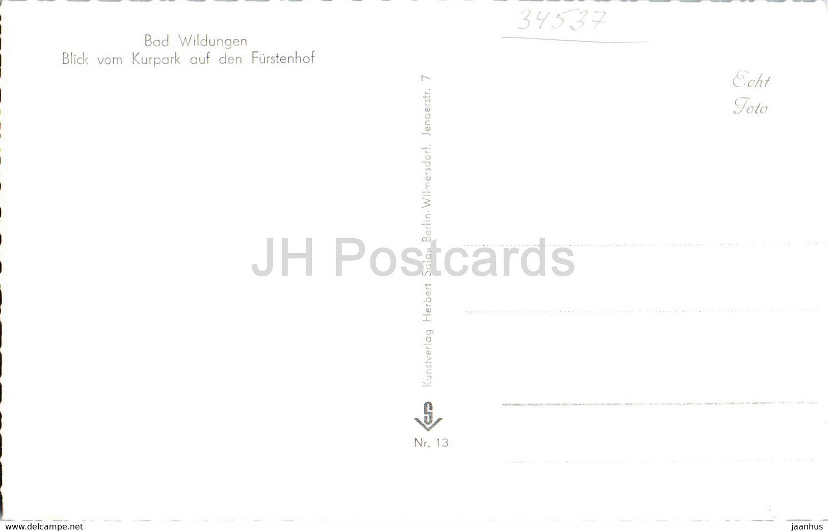 Bad Wildungen - Blick vom Kurpark auf den Furstenhof - carte postale ancienne - Allemagne - inutilisée