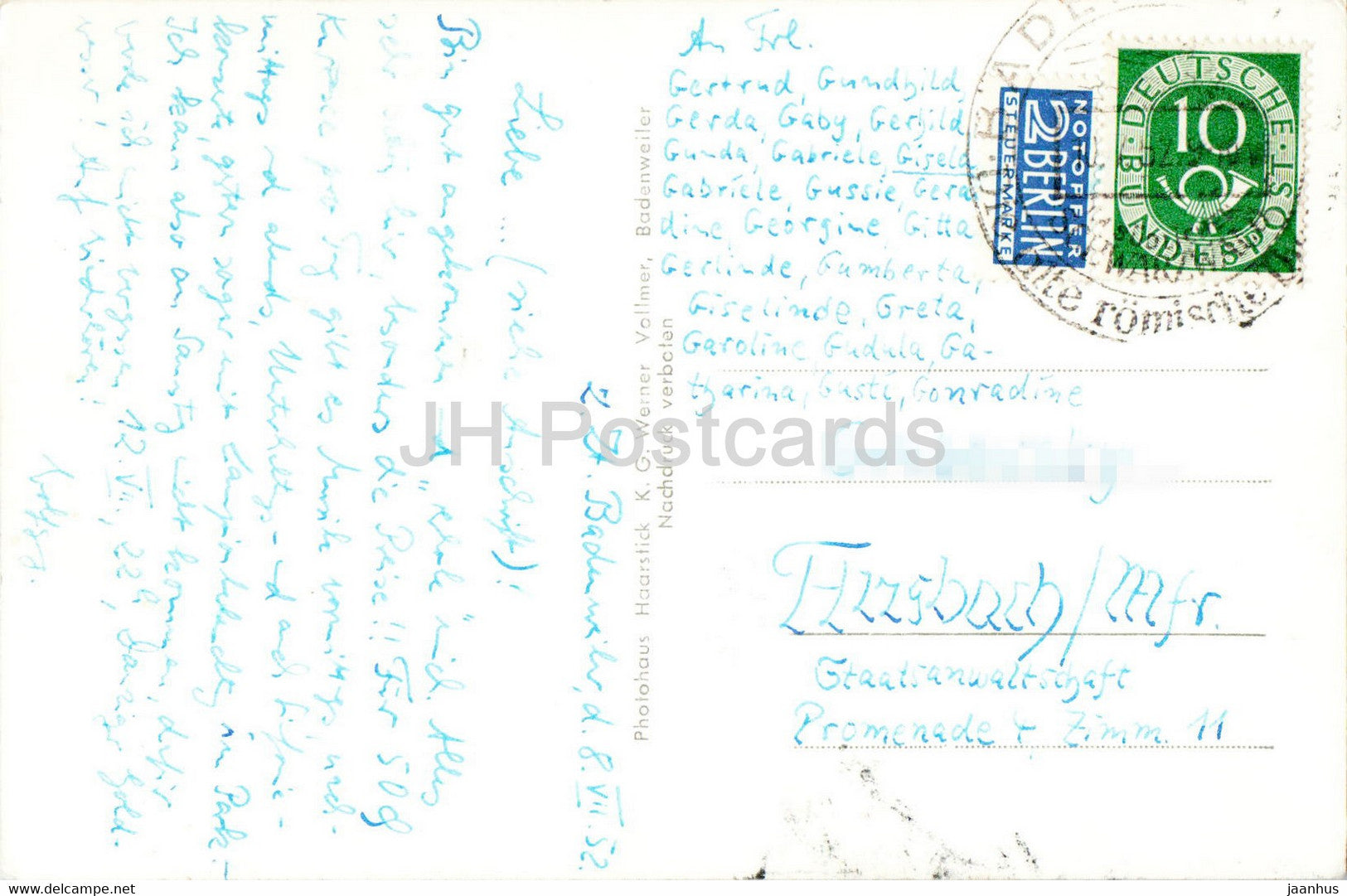 Badenweiler auf der Burgruine - carte postale ancienne - 1952 - Allemagne - utilisé
