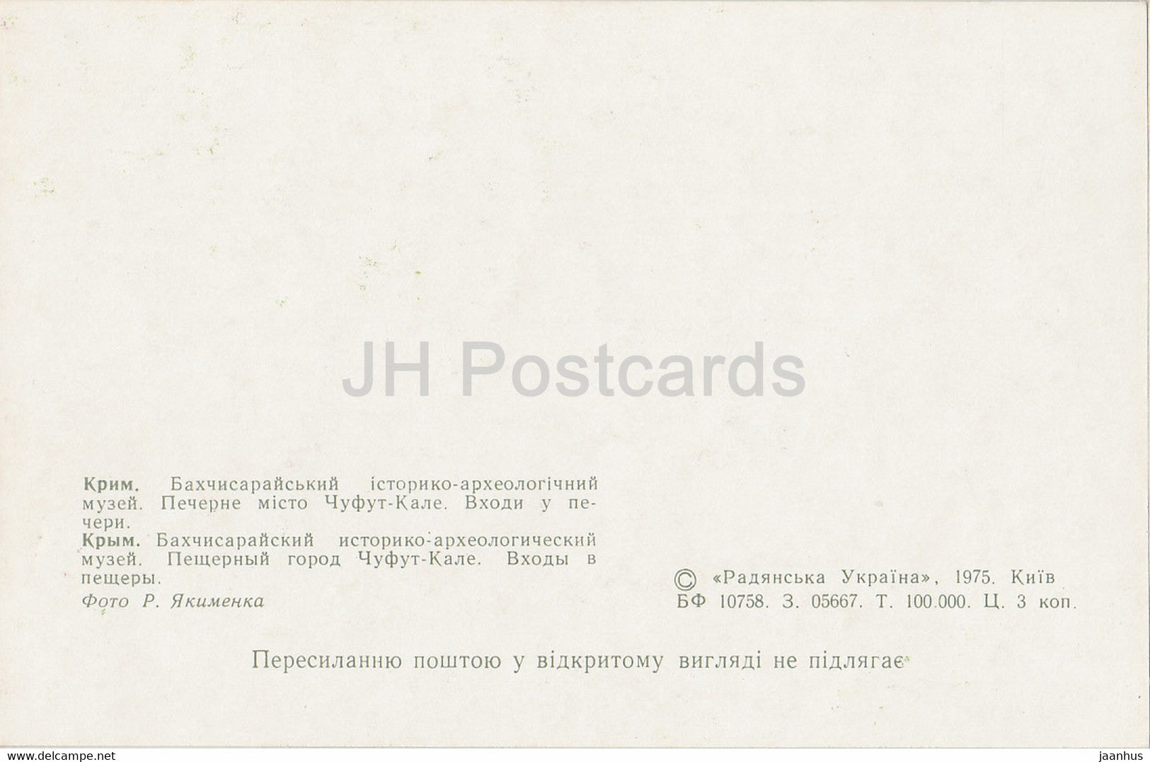 Musée Bakhchysarai - Ville troglodyte de Chufut Kale - Entrée - 1975 - Ukraine URSS - inutilisé