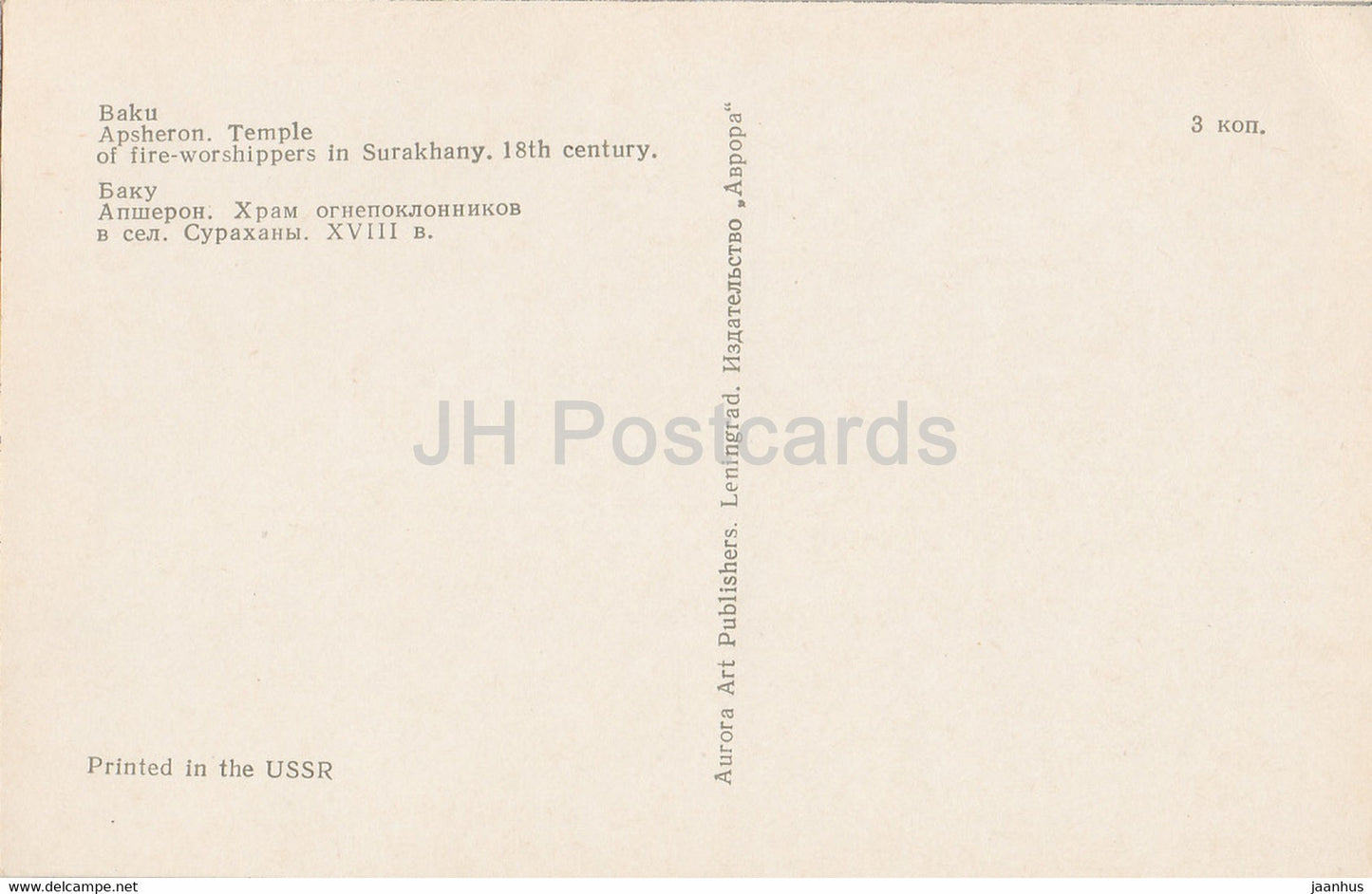 Bakou - Apsheron - Temple des adorateurs du feu à Surakhany - 1974 - Azerbaïdjan URSS - inutilisé