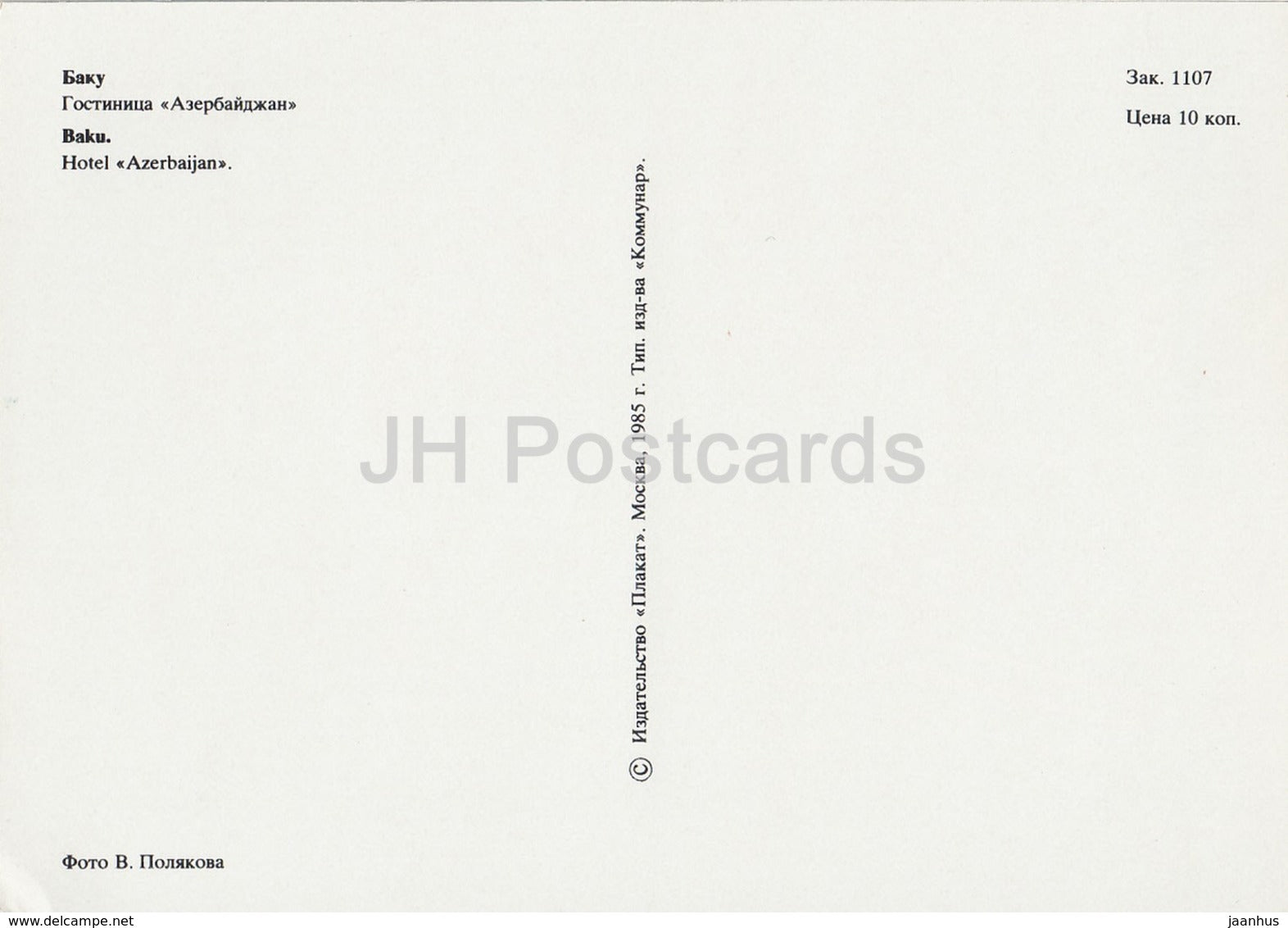 Bakou - hôtel Azerbaïdjan - 1985 - Azerbaïdjan URSS - inutilisé