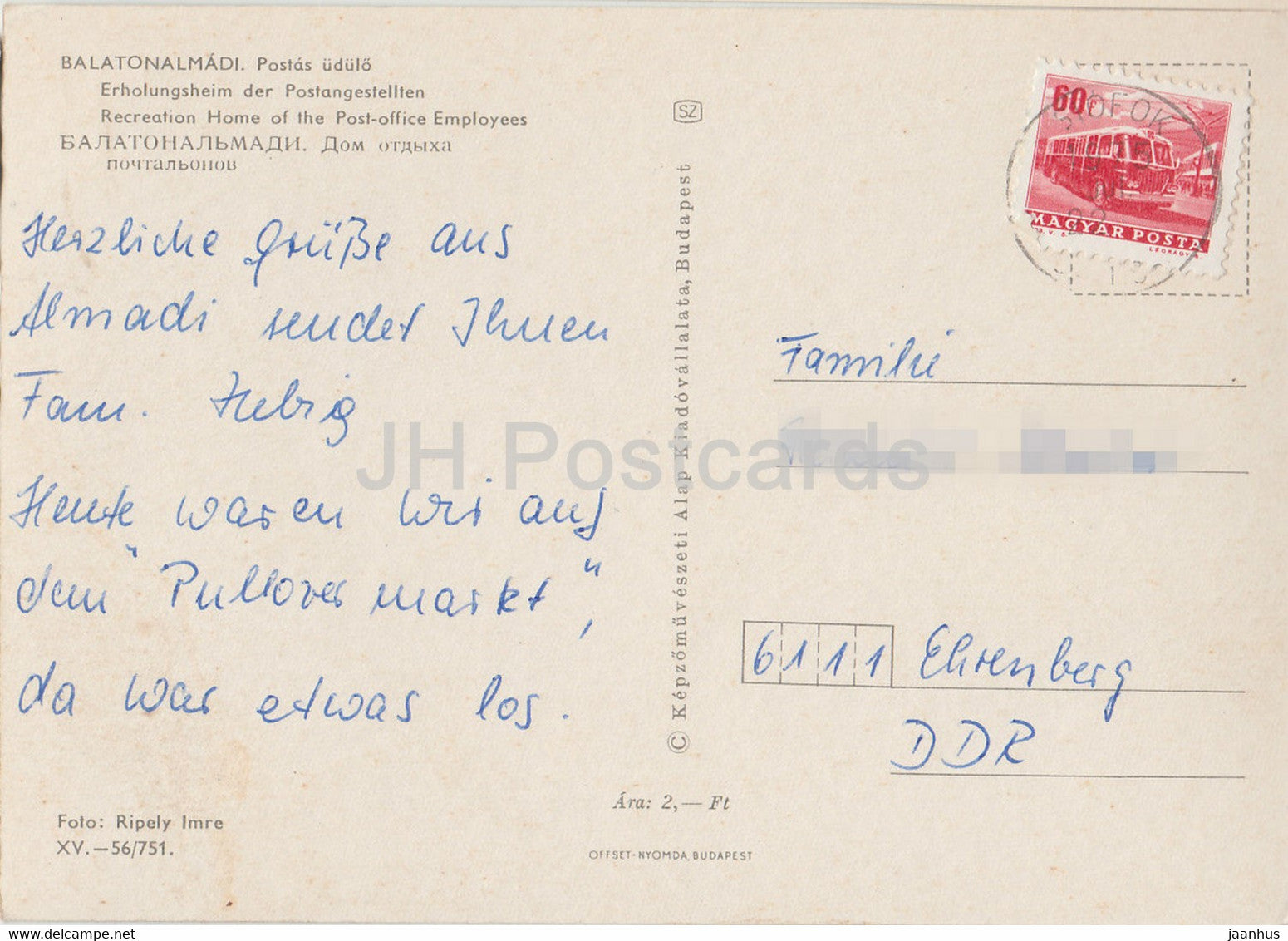 Balatonalmadi - Maison de loisirs des employés de la poste - 1975 - Hongrie - utilisé