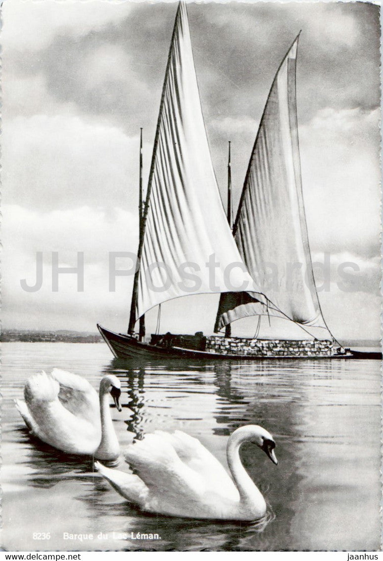Barque du Lac Léman - oiseaux - voilier - 8236 - carte postale ancienne - 1939 - Suisse - occasion