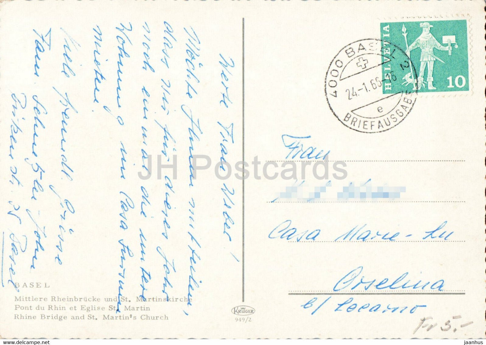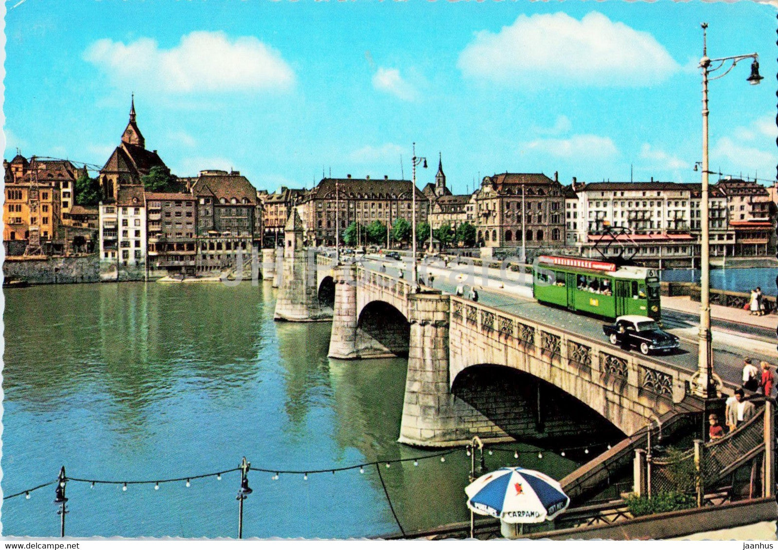 Bâle - Bâle - Mittlere Rheinbrucke und St Martinskirche - pont - tramway - 1966 - Suisse - utilisé