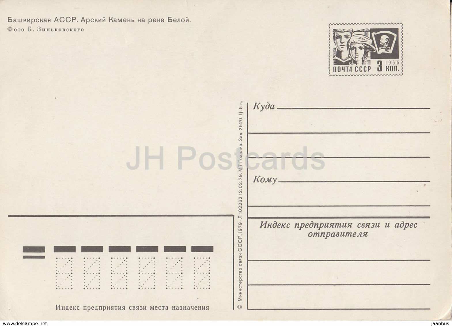 Bachkortostan - Pierre Arsky près de la rivière Belaya - entier postal - 1979 - Russie URSS - inutilisé