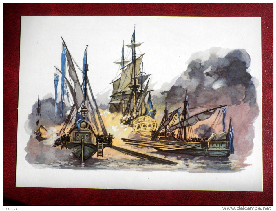 Bataille de Gangut - par I. Rodinov - navires de guerre suédois et russes - 1975 - Russie URSS - inutilisé