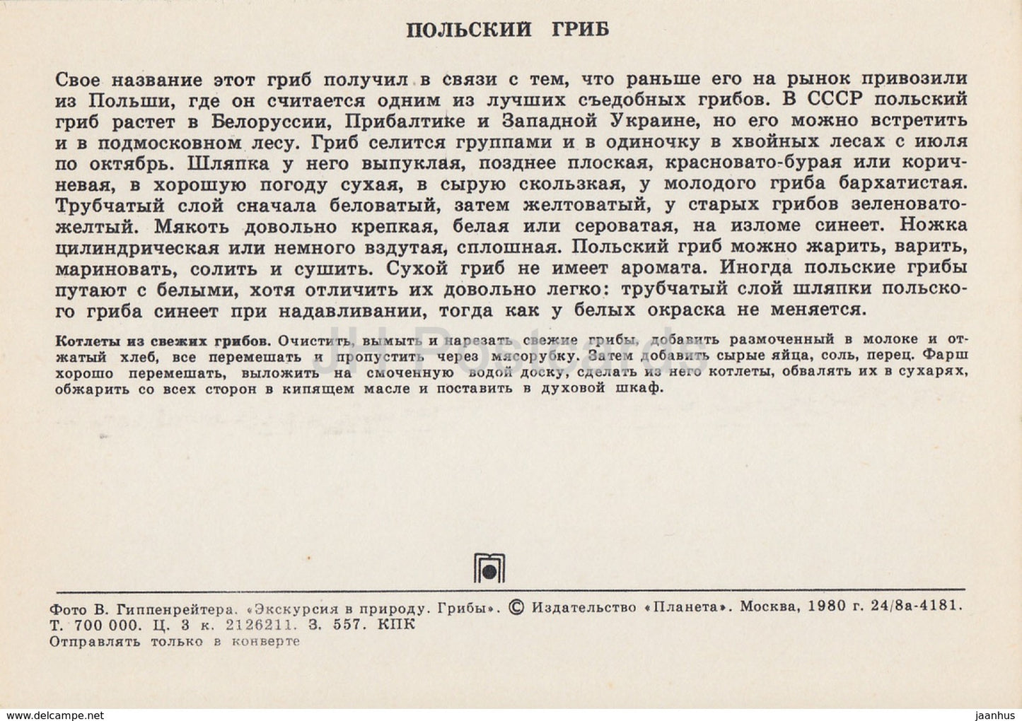 Champignon bolet de baie - Imleria badia - Champignons - 1980 - Russie URSS - inutilisé