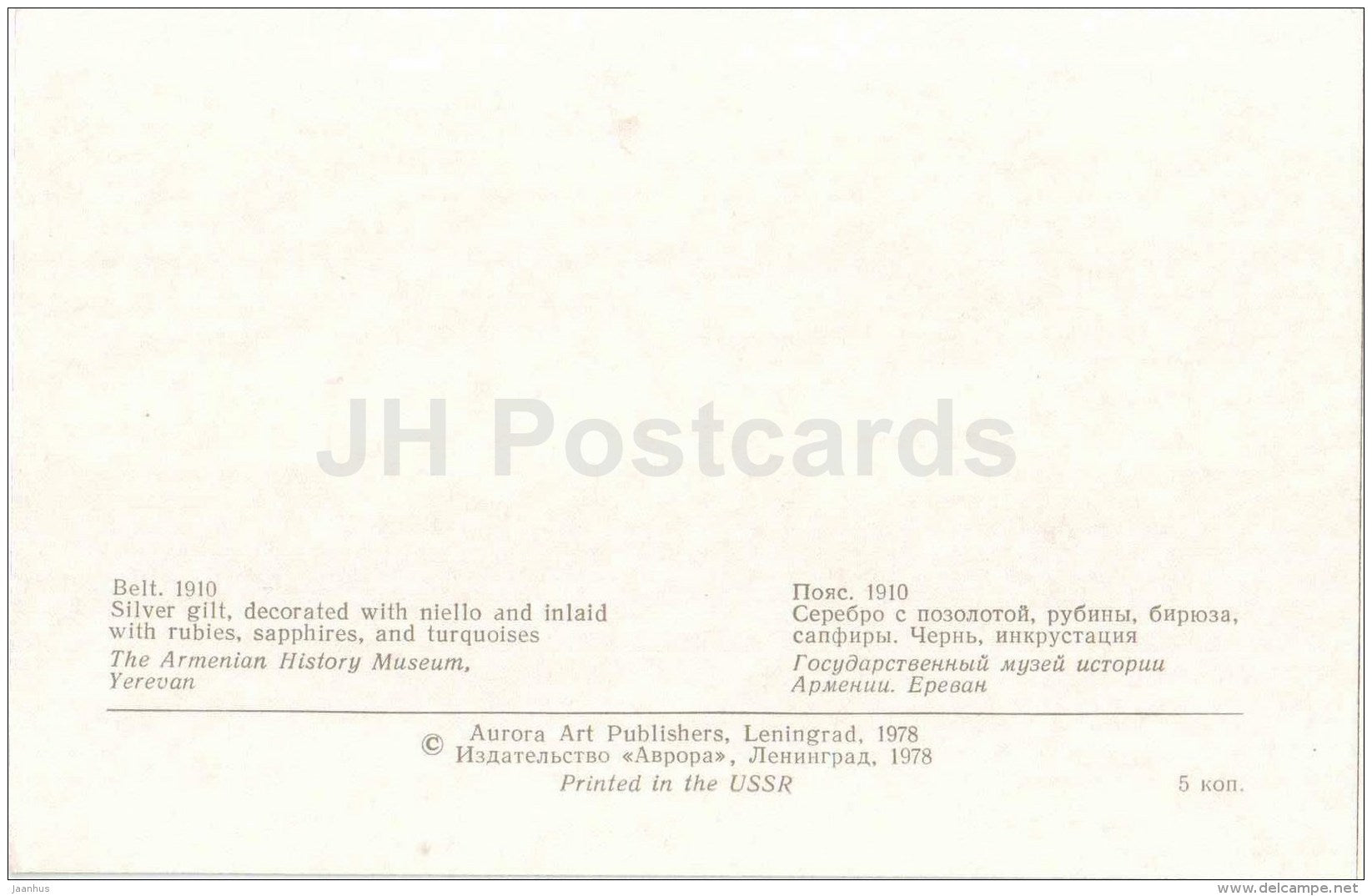 Ceinture, 1910 - Bijoux - Musée d'histoire arménienne - 1978 - Russie URSS - inutilisé
