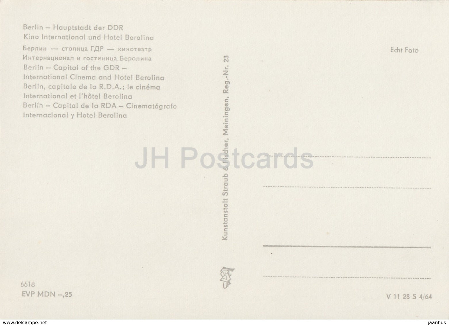 Berlin - Cinéma international - hôtel Berolina - REISEBÜRO - 1964 - DDR - Allemagne - inutilisé