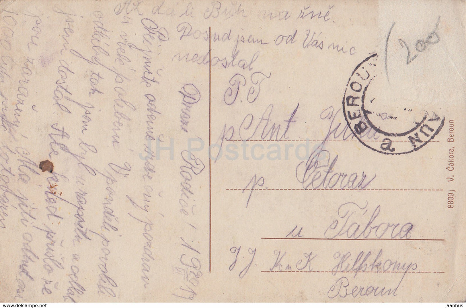Beroun - Gymnase Realne - carte postale ancienne - 1919 -République tchèque - utilisé