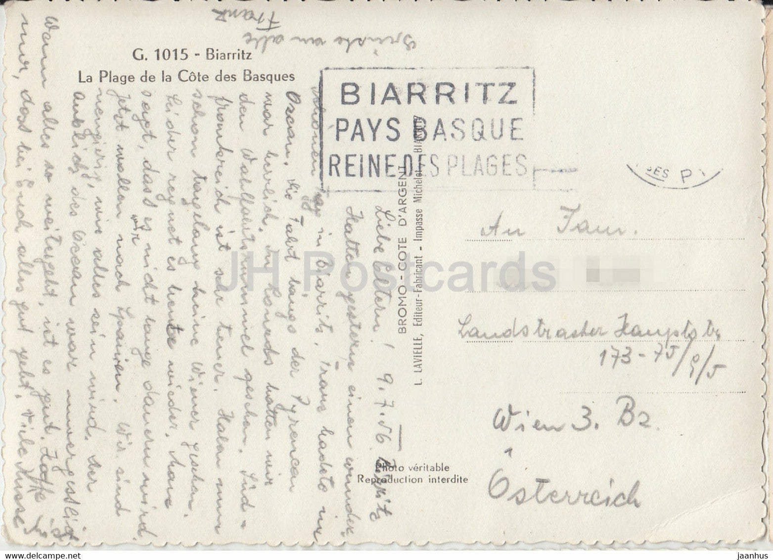 Biarritz - La Plage de la Côte des Basques - carte postale ancienne - 1956 - France - occasion