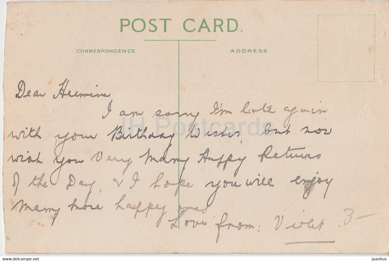 Carte de voeux d'anniversaire - Un vieux souhait d'anniversaire - illustration - carte postale ancienne - Royaume-Uni - utilisée