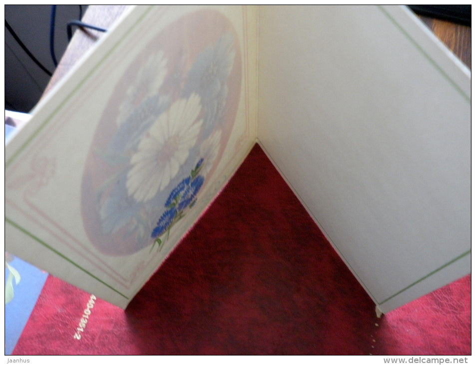 Carte de vœux d’anniversaire - bleuet - marguerites - fleurs - 1986 - Russie - URSS - inutilisée