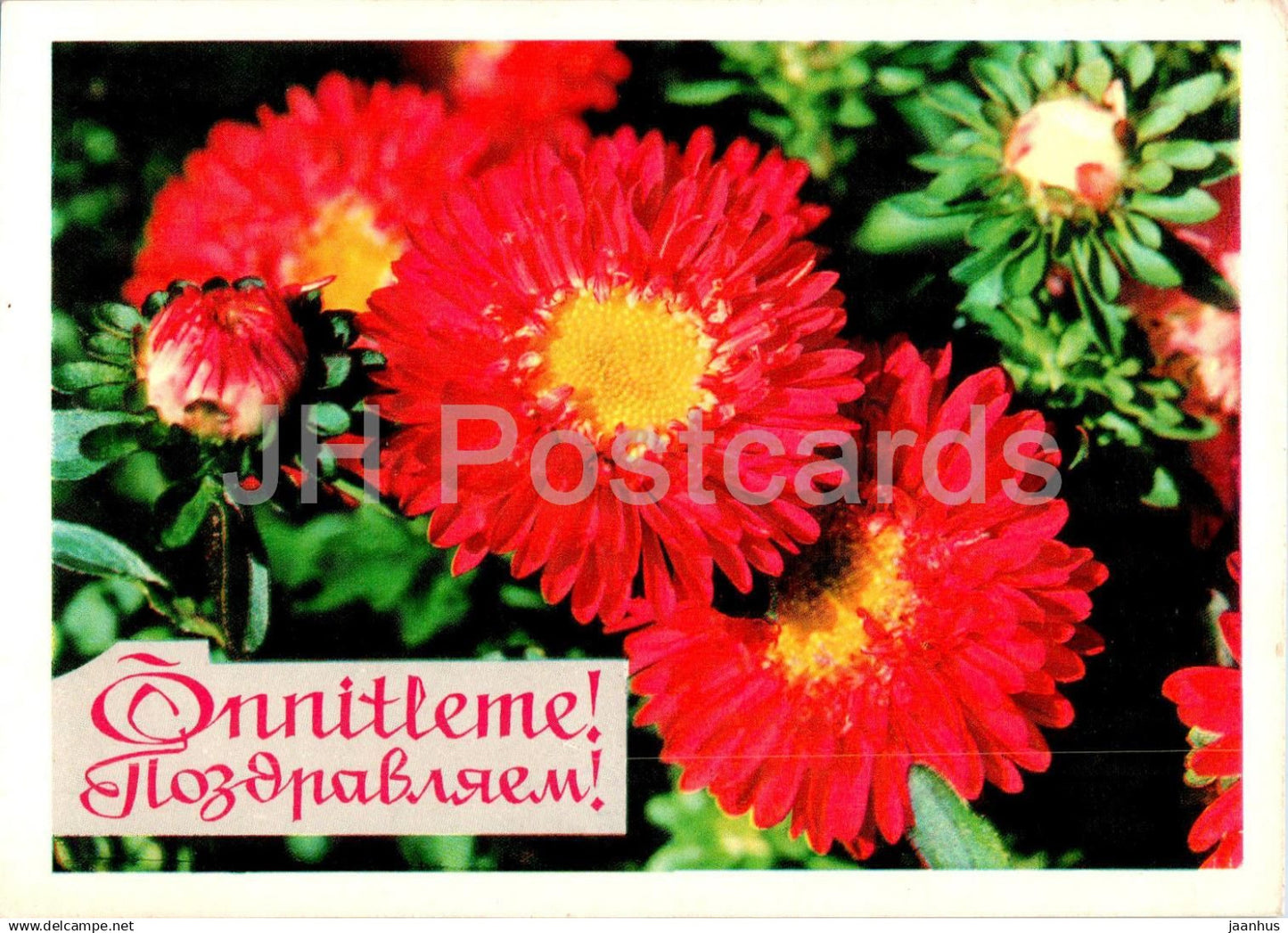 Carte de voeux d'anniversaire - Fleurs rouges - Entier postal - 1974 - Estonie URSS - Utilisé