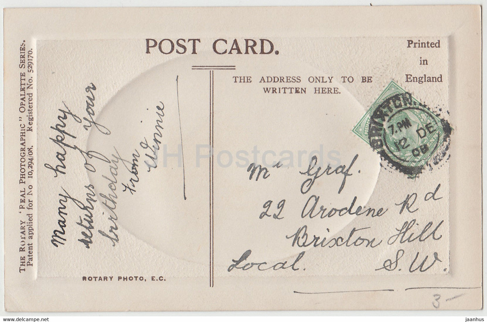 Salutations d'anniversaire - La Grâce du Ciel soit comblée - fille - Carte postale ancienne Opalette - 1908 - Royaume-Uni - utilisé
