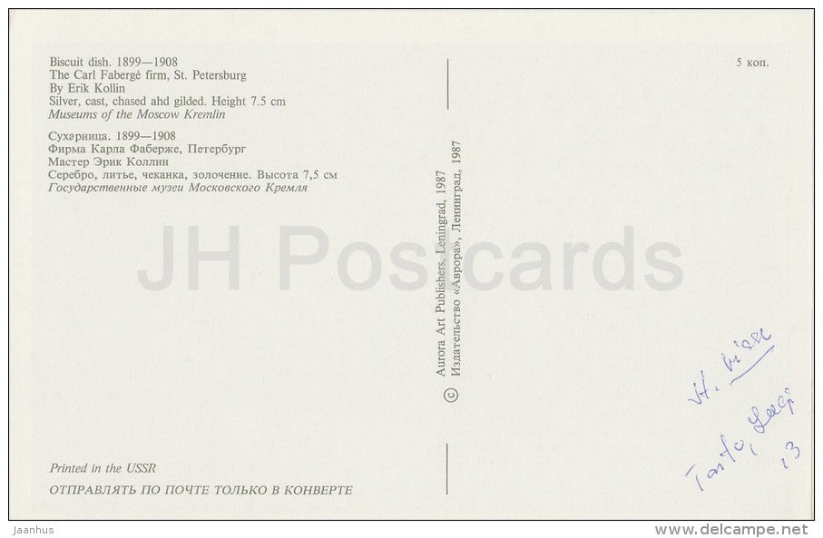 Plat à biscuits - coquille - argent - The Faberge Jewellery - 1987 - Russie URSS - inutilisé