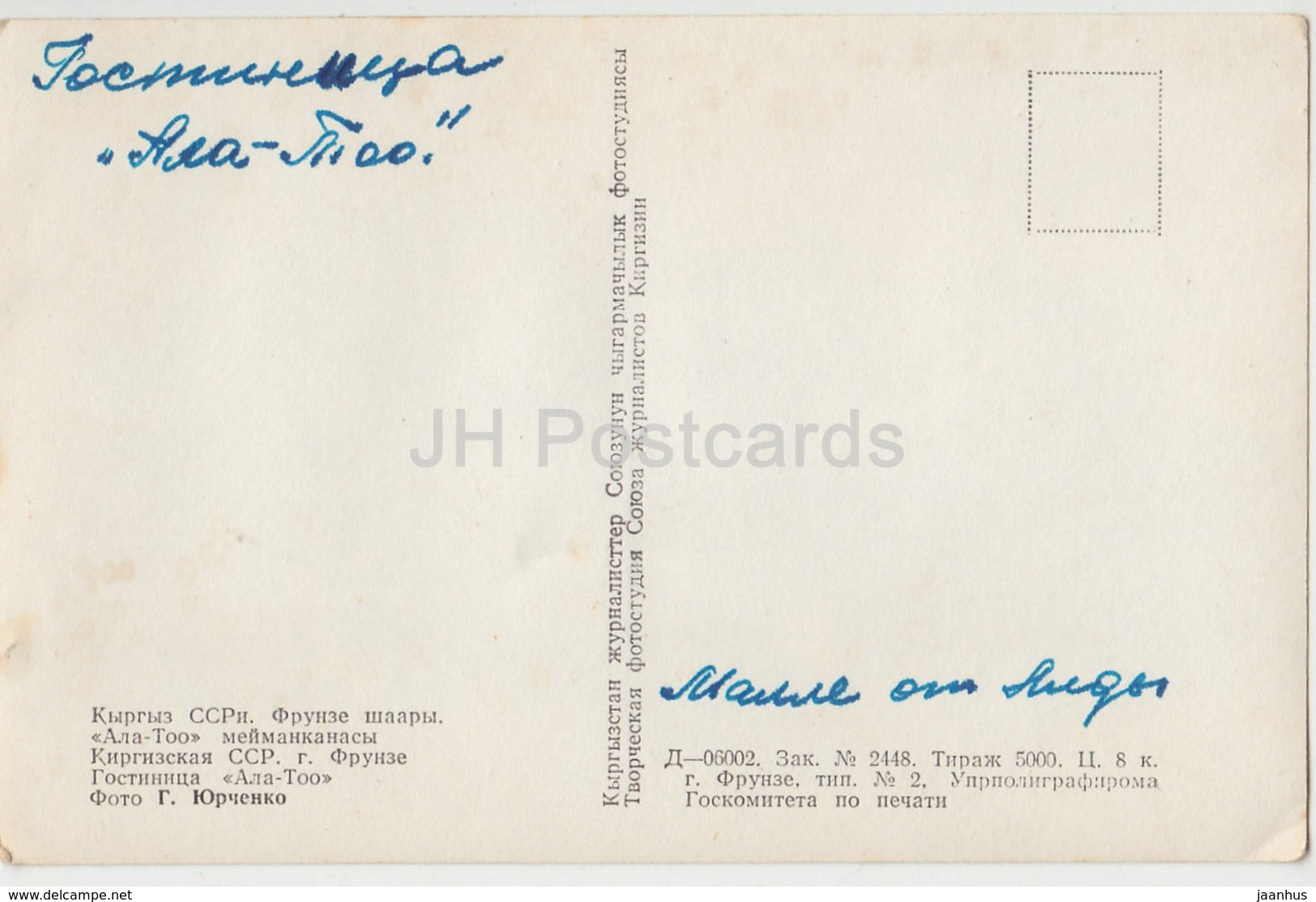 Bichkek - Frunze - Hôtel Ala-Too - voiture Volga - carte postale photo - Kirghizistan URSS - utilisé