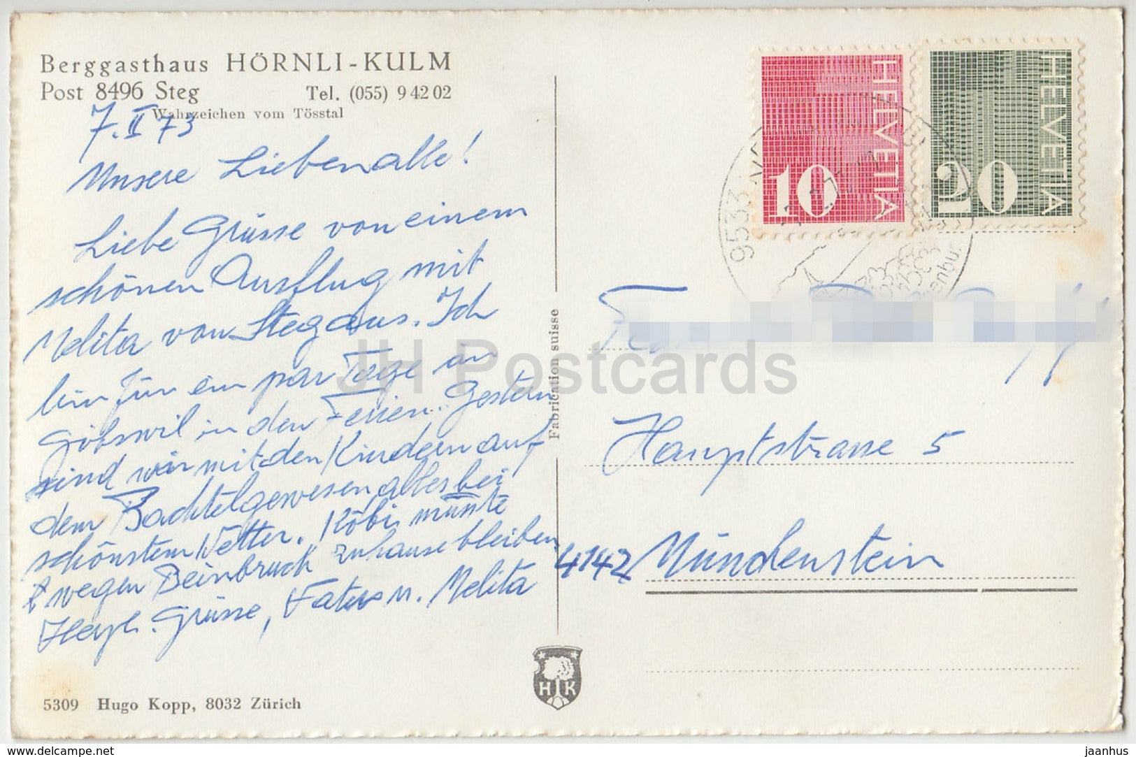 Blick vom Hornli-Kulm 1137 m ins Tosstal mit Alpen - Berggasthaus - 5309 - Suisse - 1973 - utilisé