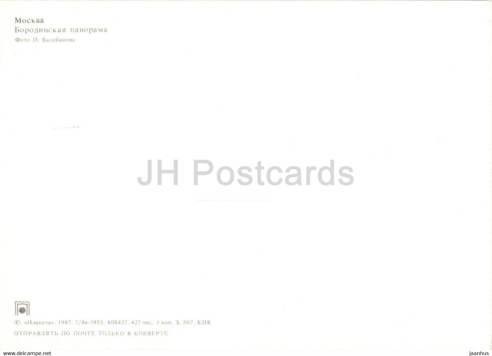 Borodino Panorama - monument à Koutouzov - Moscou - 1 - 1987 - Russie URSS - inutilisé