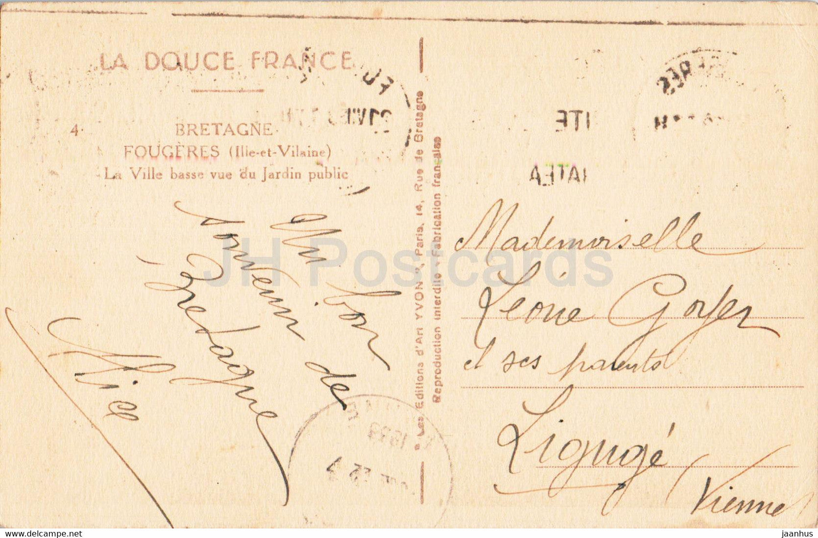 Bretagne - Fougères - La Ville basse vue du Jardin public - La Douce France - carte postale ancienne - 1933 - France - occasion