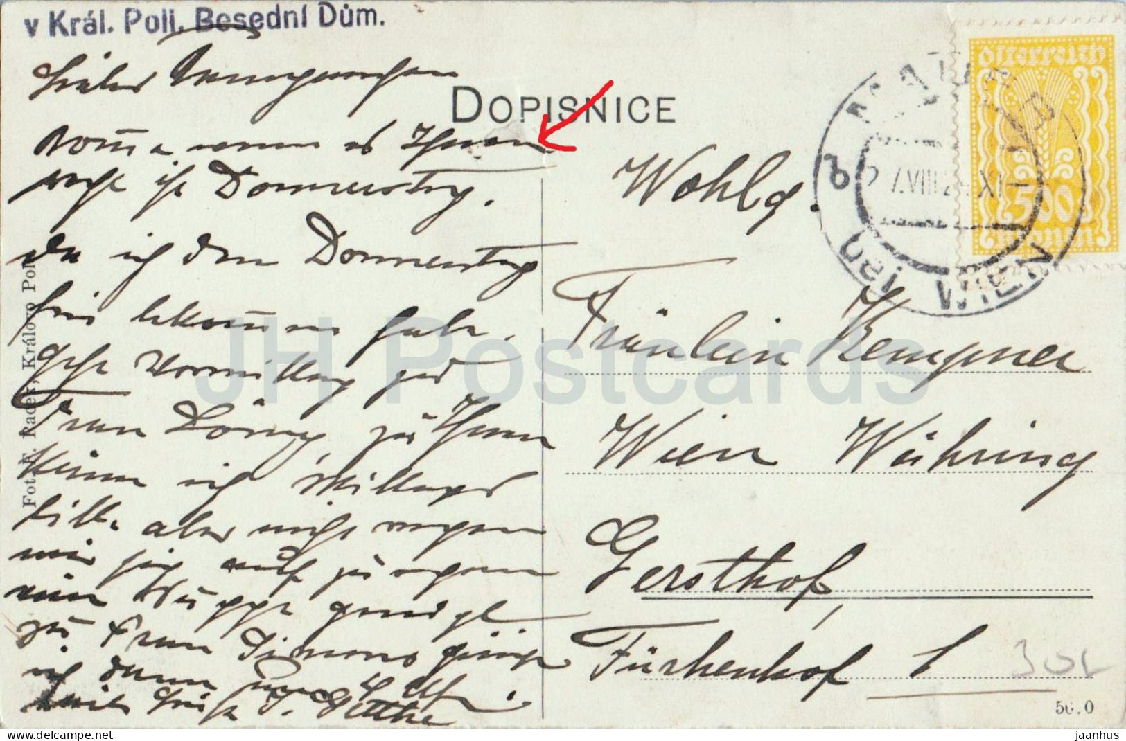 Brno - Besedni Dum - Kralovo Pole - Community Hall - photo - carte postale ancienne - années 1920 - République tchèque - utilisé