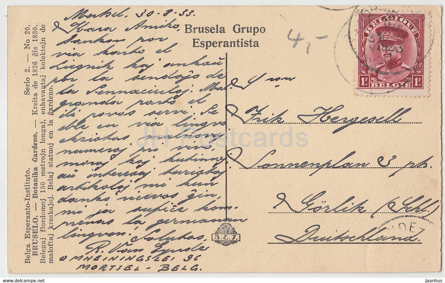 Bruxelles - Bruselo - Botanika Gardeno - tram - Espéranto - carte postale ancienne - 1933 - Belgique - occasion