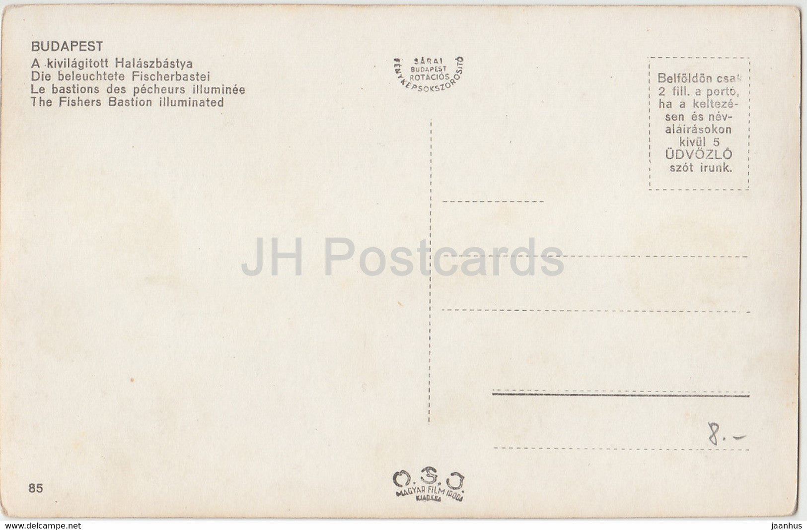 Budapest - A kivilagitott Halaszbastya - Le Bastion des Pêcheurs illuminé - carte postale ancienne - Hongrie - inutilisé