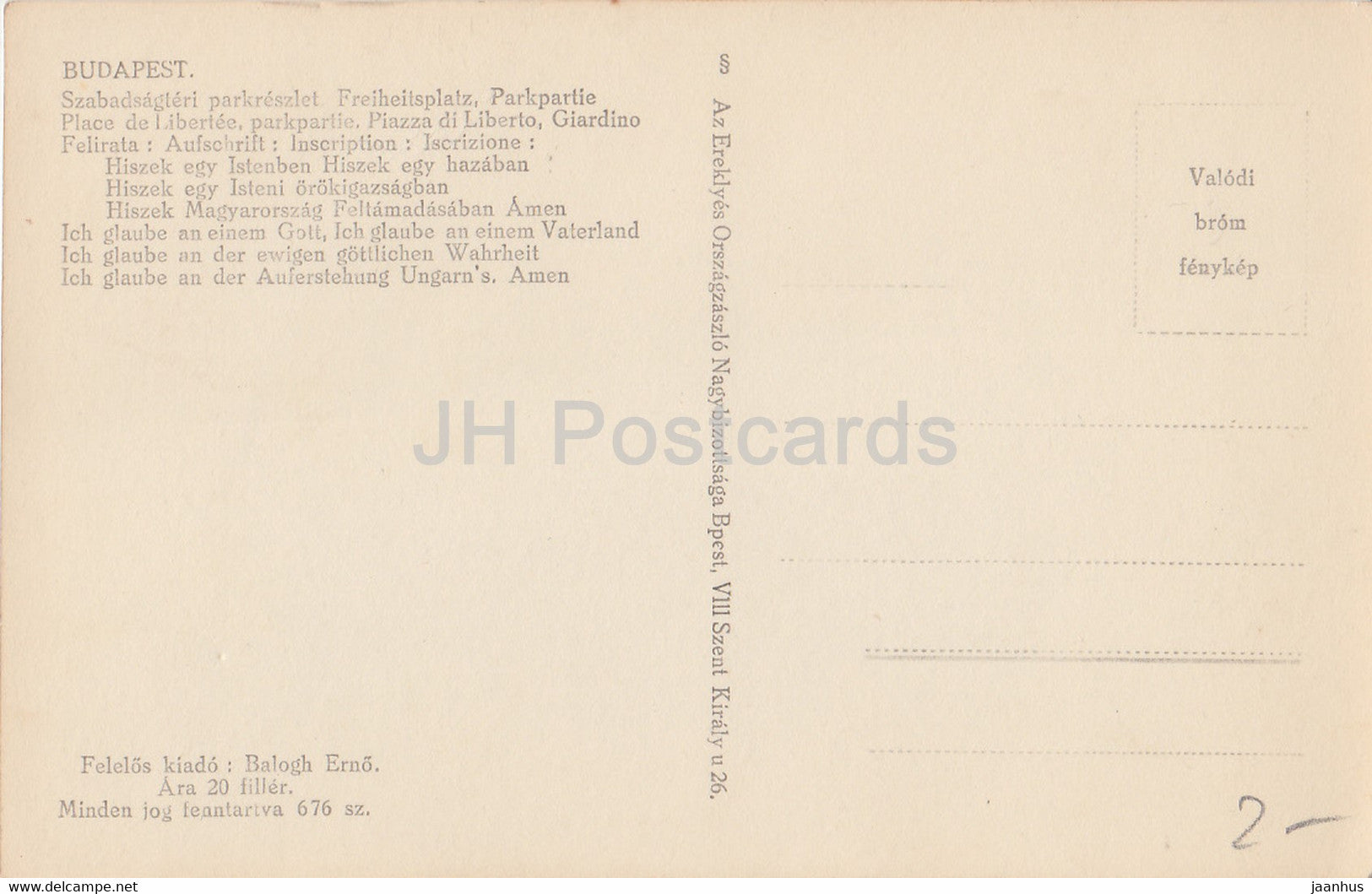 Budapest - Szabadsagteri parkreszlet - Freiheitsplatz - Parkpartie - carte postale ancienne - Hongrie - inutilisée