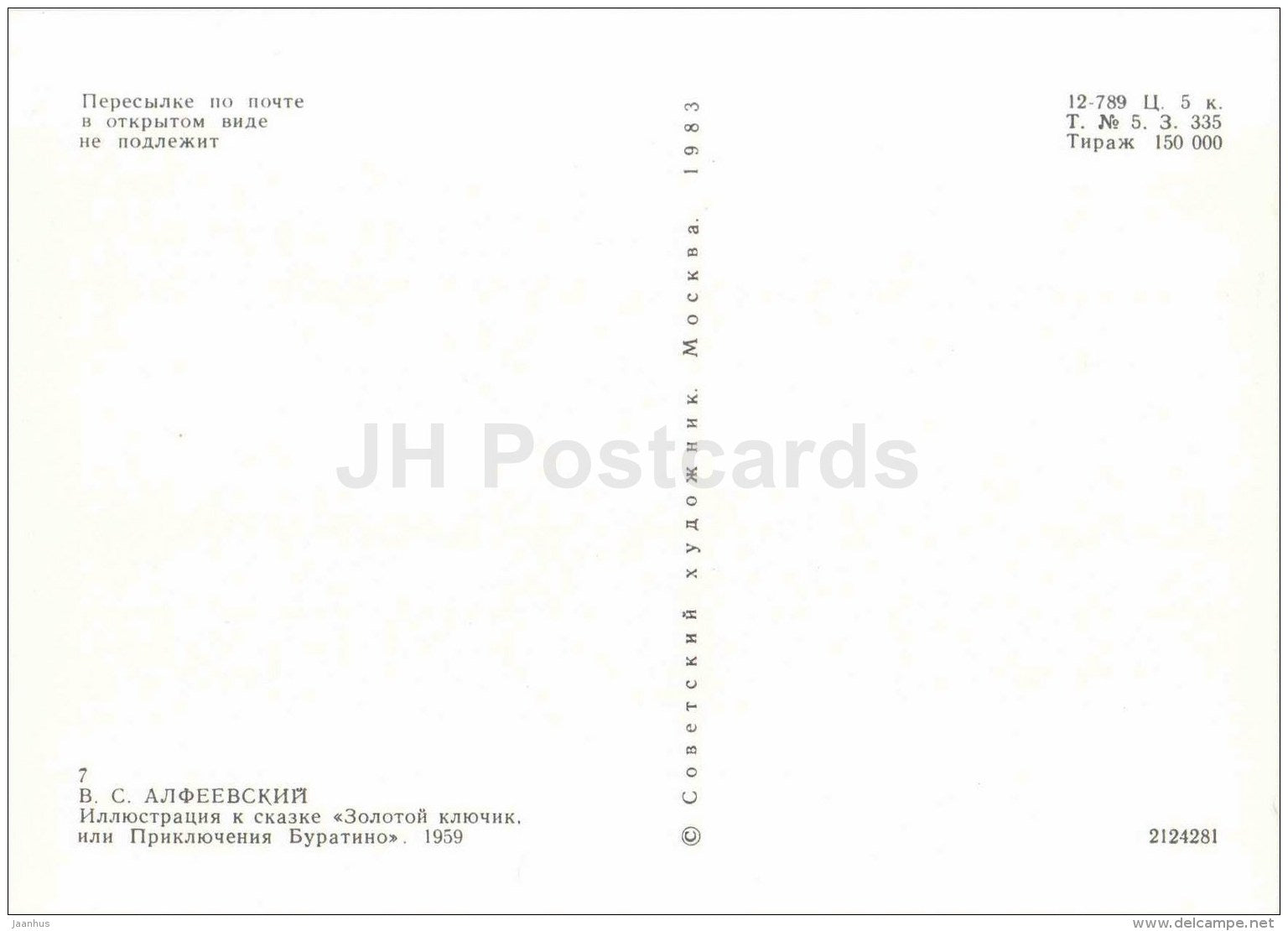 Buratino - oiseau - Clé d'Or - Pinocchio et Buratino - 1983 - Russie URSS - inutilisé