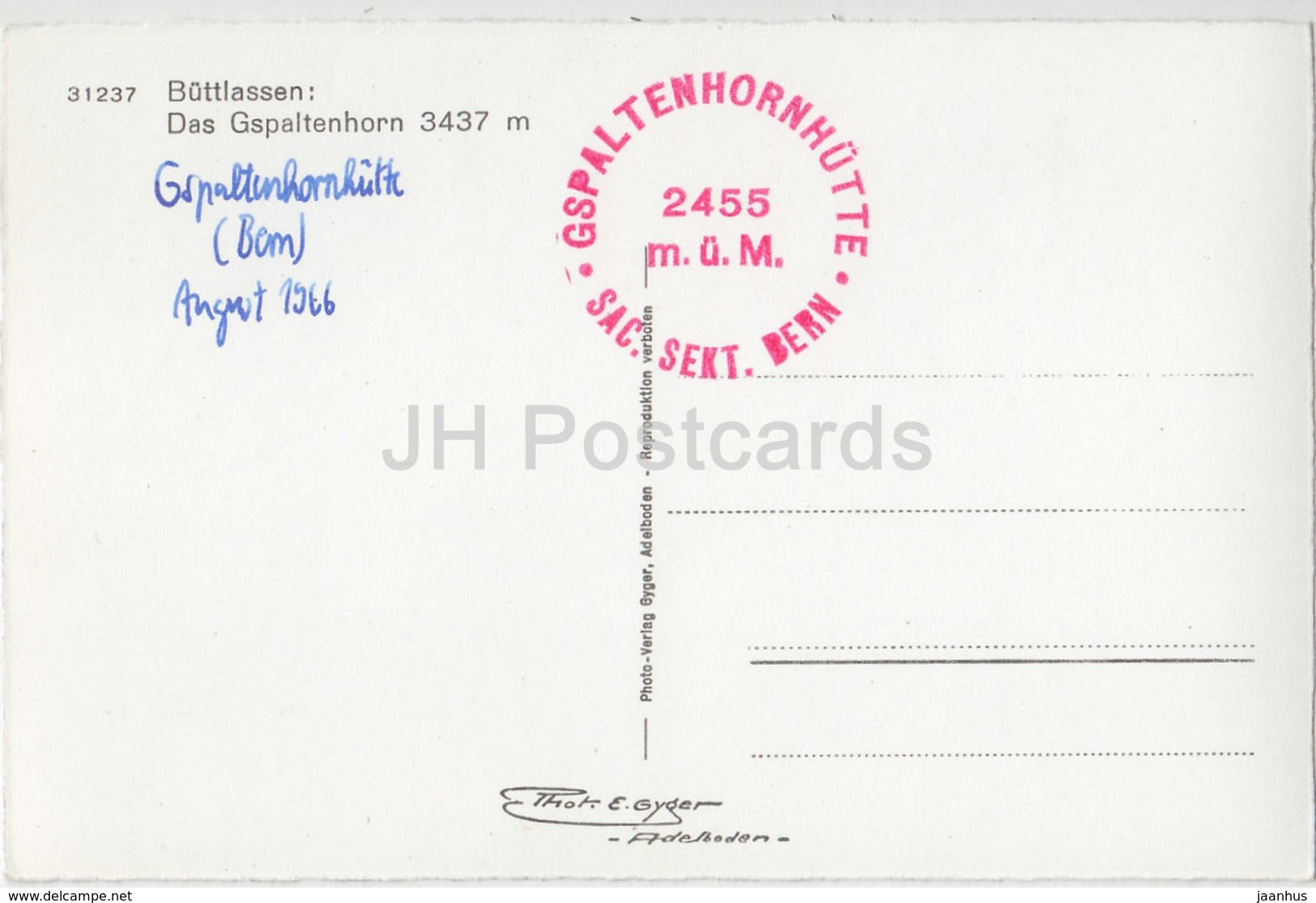 Buttlassen - Das Gspaltenhorn 3437 m - 31237 - Suisse - 1966 - occasion