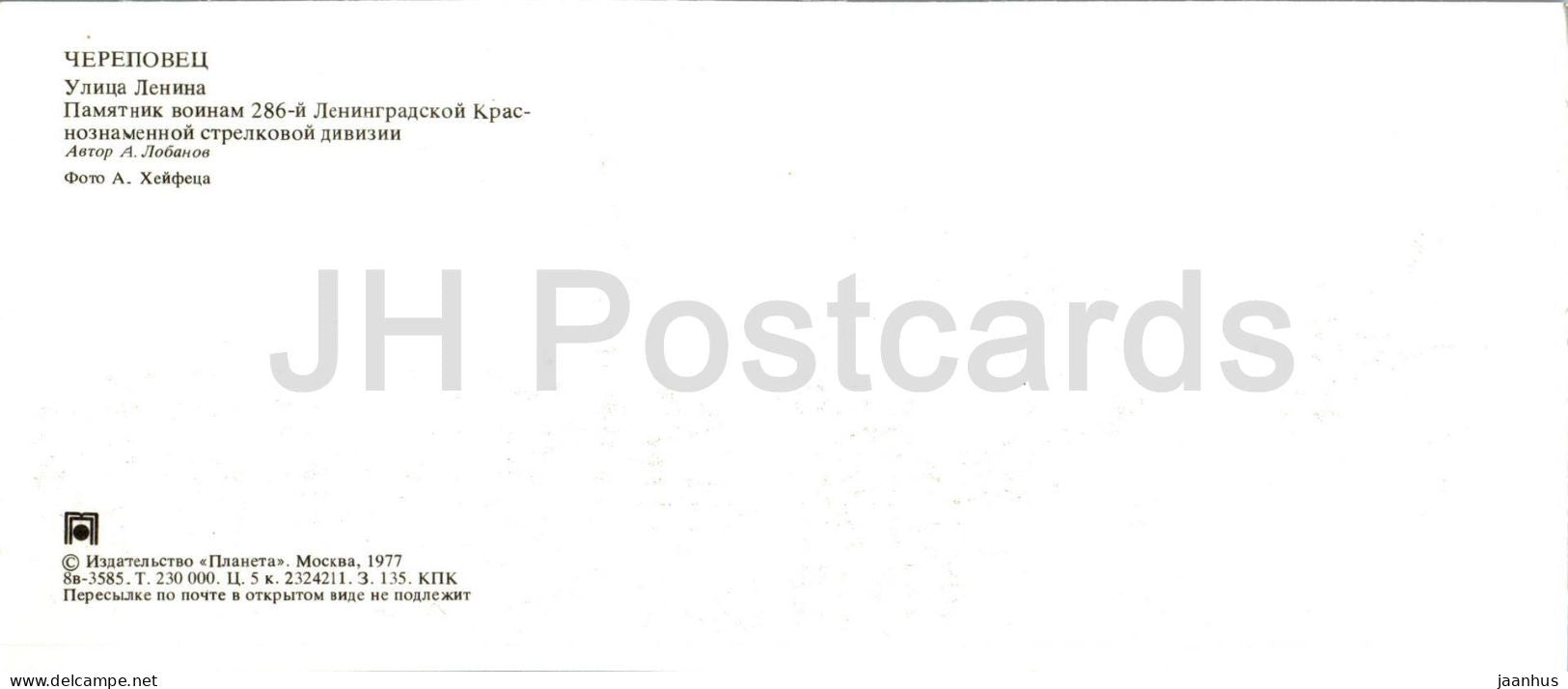 Cherepovets - Rue Lénine - monument aux soldats de la 286e division de Léningrad - 1977 - Russie URSS - inutilisé