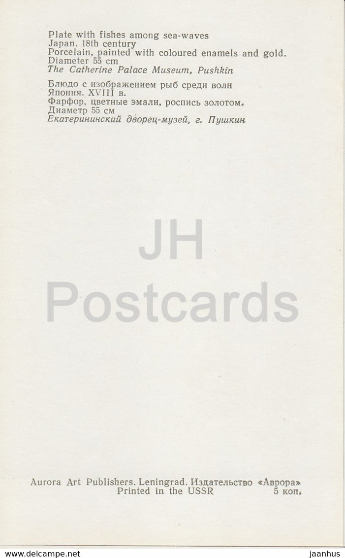 Porcelaine chinoise et japonaise - Assiette avec des poissons parmi les vagues de la mer. Japon. 18e siècle 1 Russie - URSS - 1976 - inutilisé