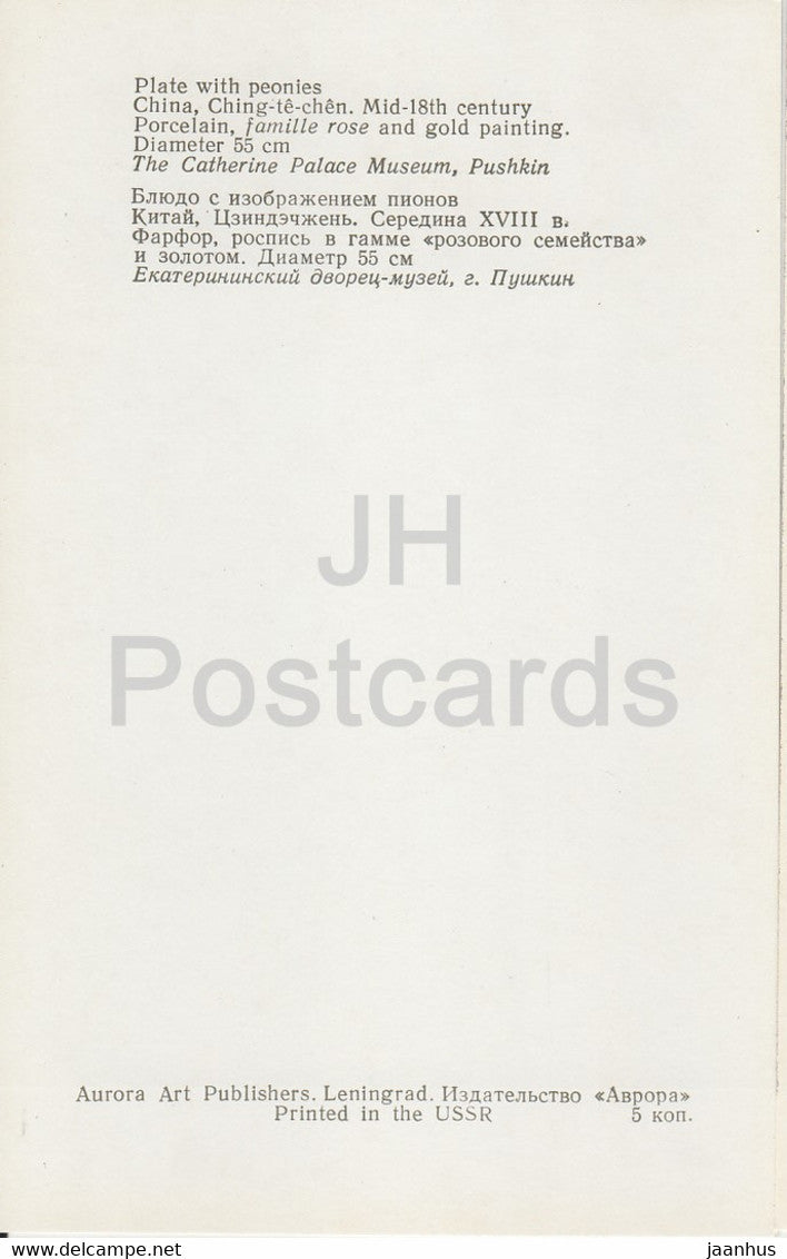 Porcelaine Chinoise et Japonaise - Assiette aux Pivoines - Chine 18ème siècle - 1 - Russie - URSS - 1976 - inutilisé