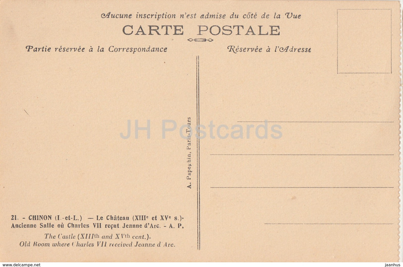 Chinon - Le Château - Ancienne Salle ou Charles VII recoupé Jeanne d'Arc - château - 21 - carte postale ancienne - France - inutilisée