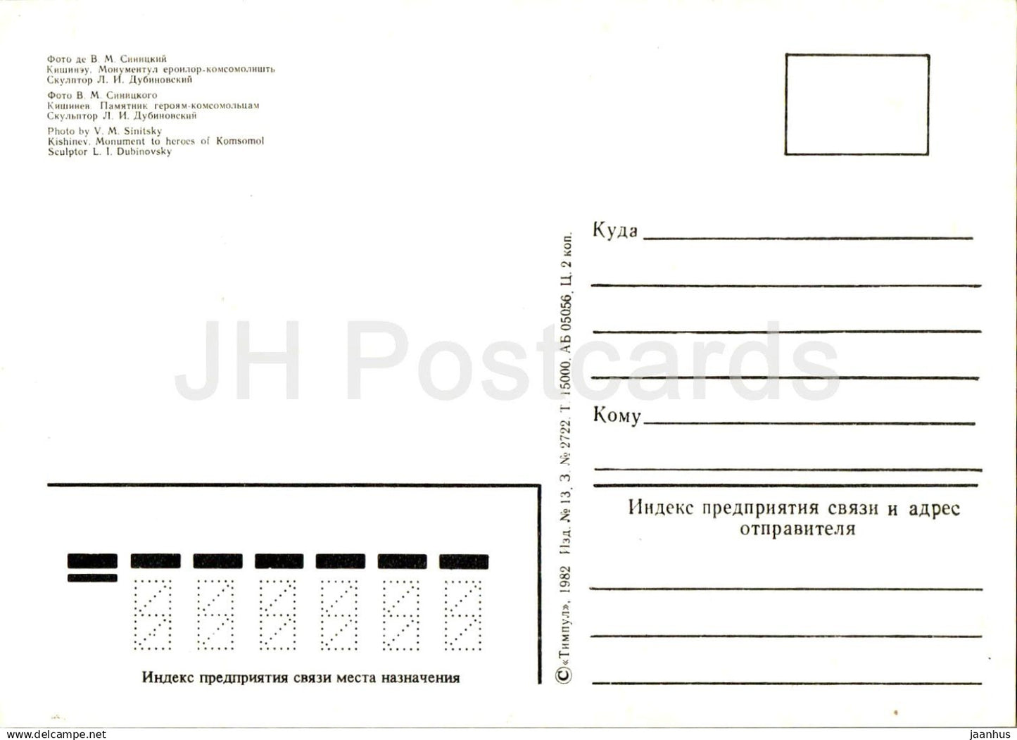 Chisinau - Kishinev - Monument aux héros du Komsomol - 1982 - Moldavie URSS - inutilisé