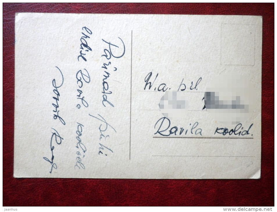 Carte de vœux de Noël - bougie - gâteau - cône - tasse de thé - années 1920-1930 - Estonie - utilisé