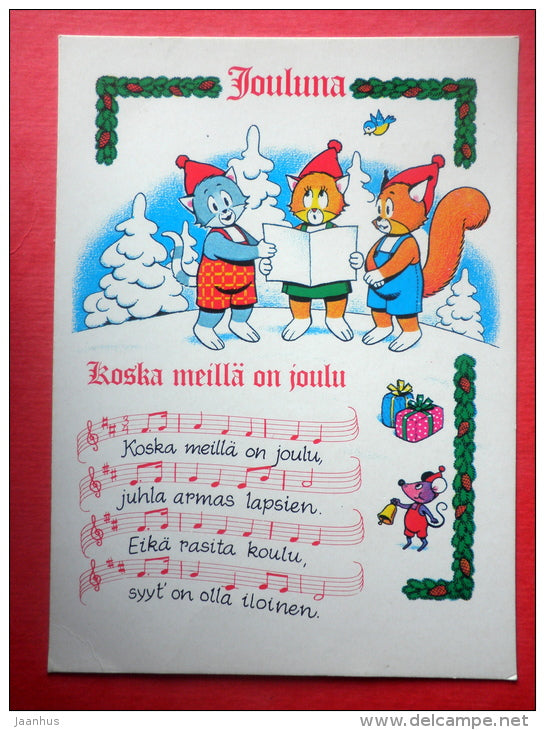 Carte de vœux de Noël - chat - écureuil - musique - 87 - Finlande - utilisée en Finlande