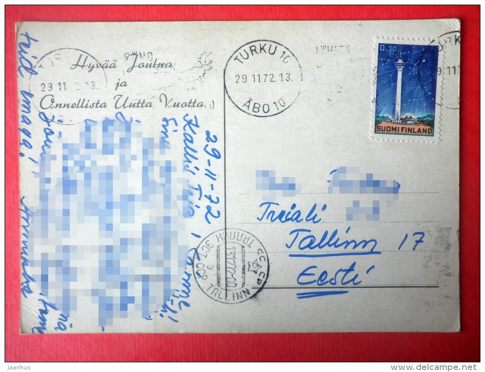 Carte de vœux de Noël - enfant - oiseaux - mésange - Finlande - envoyée de Finlande Turku à l'Estonie URSS 1972