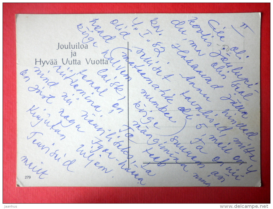 Carte de vœux de Noël - cadeaux - arbre de Noël - chien - enfants - 279 - Finlande - distribuée en Finlande