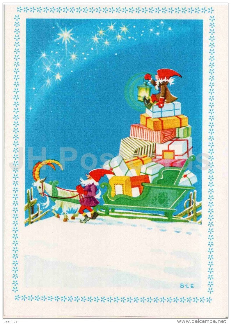 Carte de vœux de Noël - illustration - luge - gnomes - B-LE - Finlande - utilisée en 1995