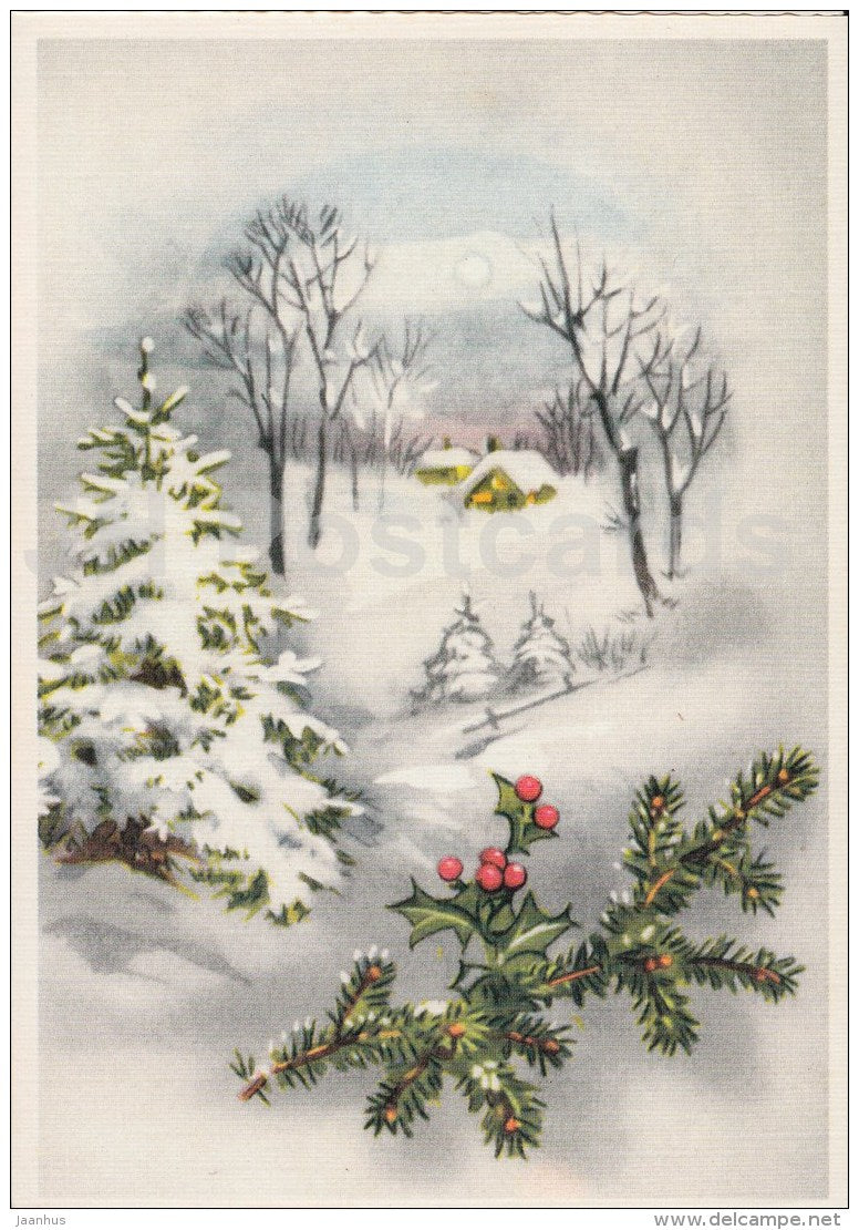 Carte de vœux de Noël - vue d'hiver - illustration - Estonie - utilisée en 1999