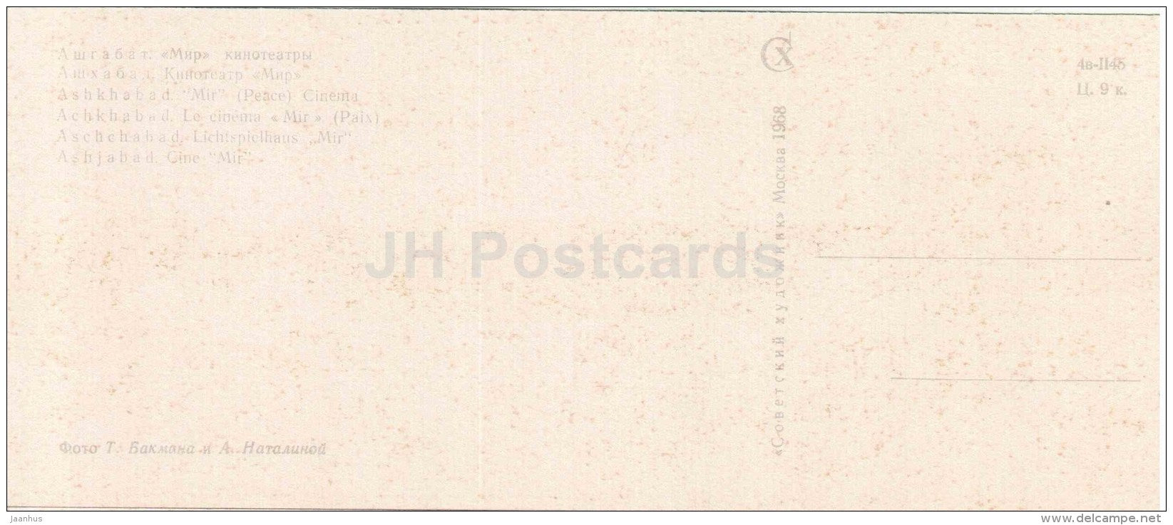 cinéma Mir (Paix) - Achkhabad - Achgabat - 1968 - Turkménistan URSS - inutilisé