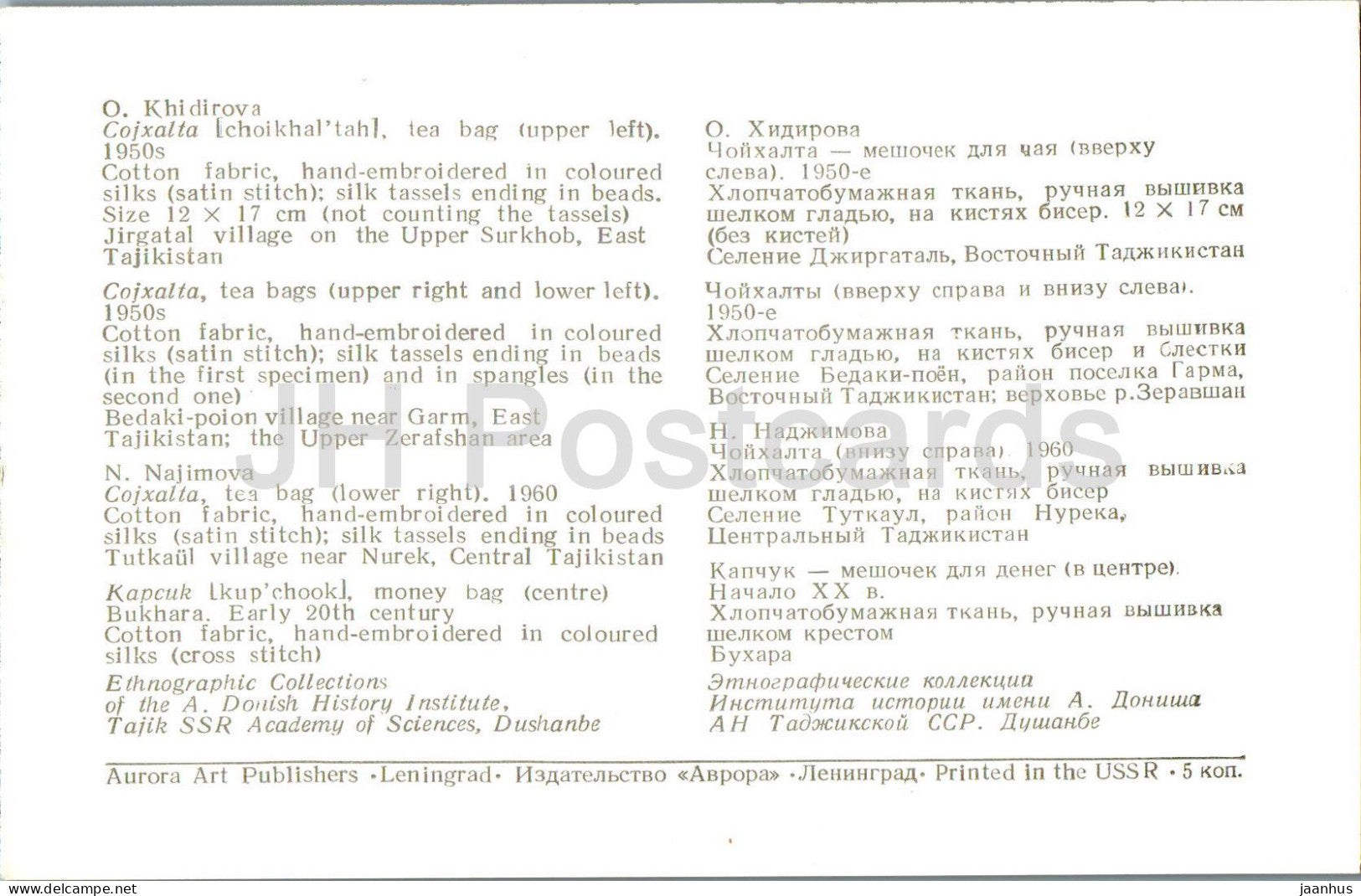 Sachets de thé Cojxalta par O. Khidirova - art populaire - Art tadjik - Art du Tadjikistan - 1977 - Russie URSS - inutilisé