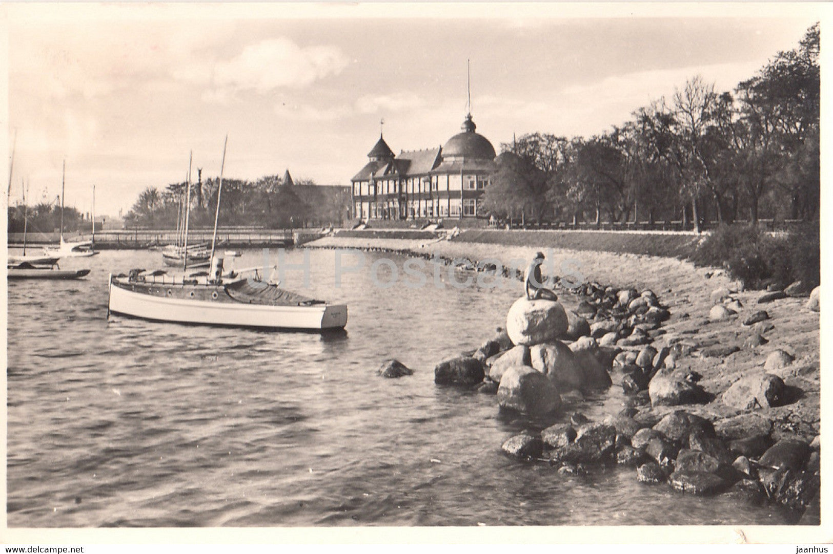 Copenhague - Le Pavillon des Yachts et la petite Nymphe des Mers Langelinie - bateau - carte postale ancienne - 1938 - Danemark - utilisé