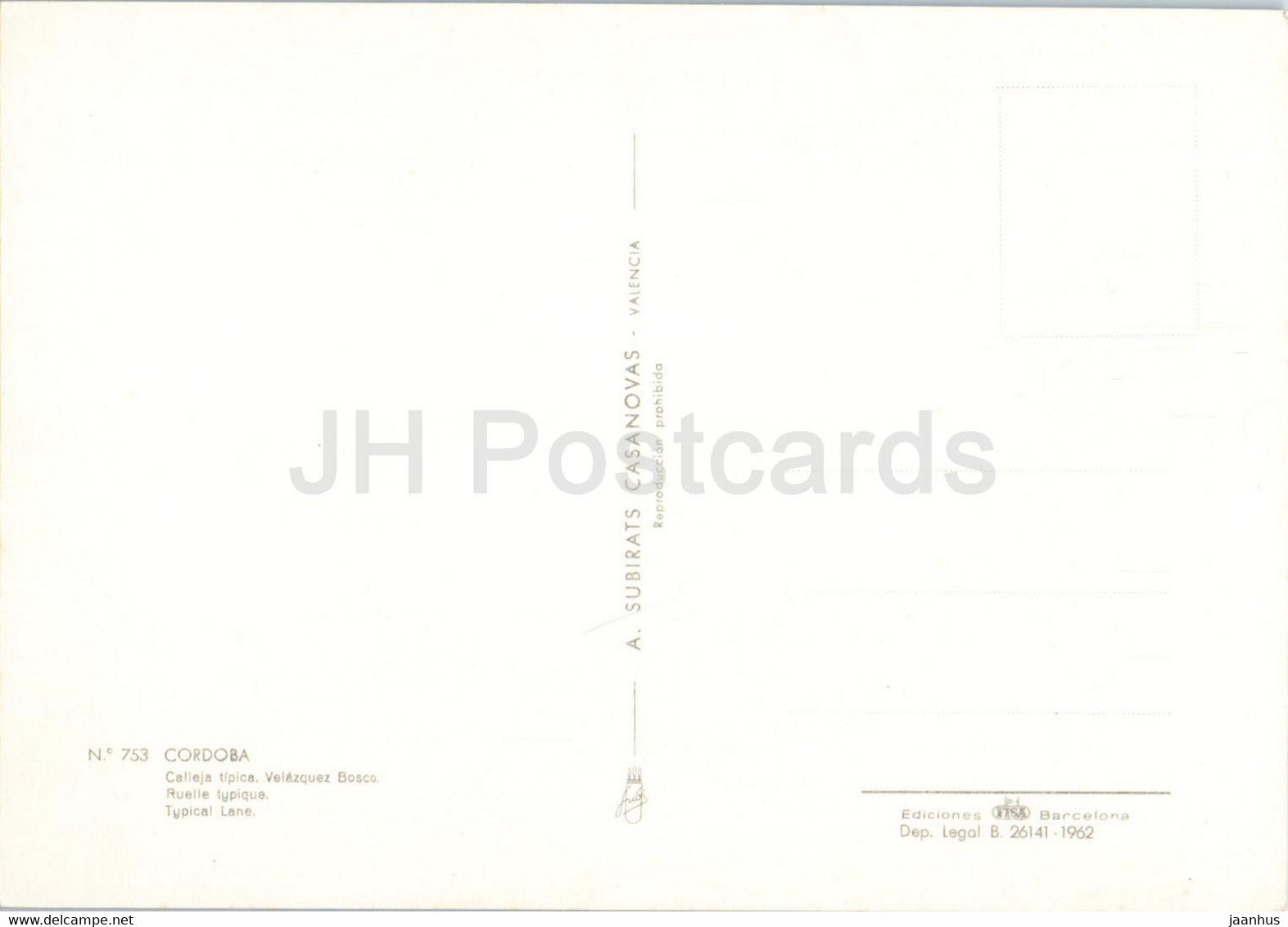 Cordoue - Calleja tipica - Velazquez Bosco - Ruelle typique - 753 - Espagne - inutilisé